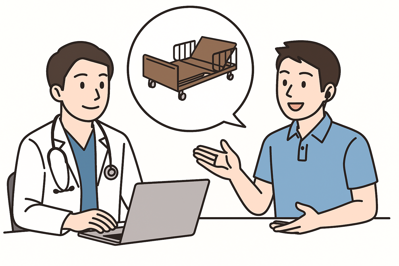 当院では、医師の診断やリハビリ職の評価結果をもとに、最適な用具の提案ができるよう連携しています。たとえば、「起き上がりが難しくなってきた」「転倒が増えてきた」といった相談を受けた場合、医師が原因を診察で把握し、リハビリ職が動作を評価、福祉用具業者が実際にご自宅を訪問して高さや動線を調整します。