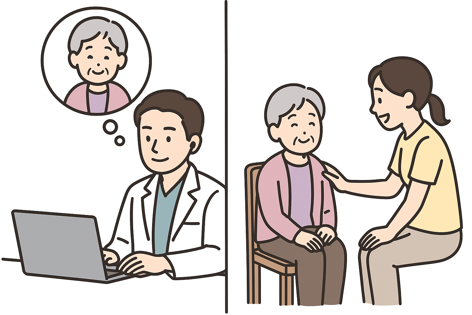たとえば、「最近食欲が落ちてきた」「足のむくみが強くなってきた」といった気づきは、デイサービスの現場で最も早く把握されることが多いです。そうした情報を受けて、医師が早めに診察を行い、治療や検査につなげることで、重症化を防ぎ、安心して通所を続けられる支援を行っています。