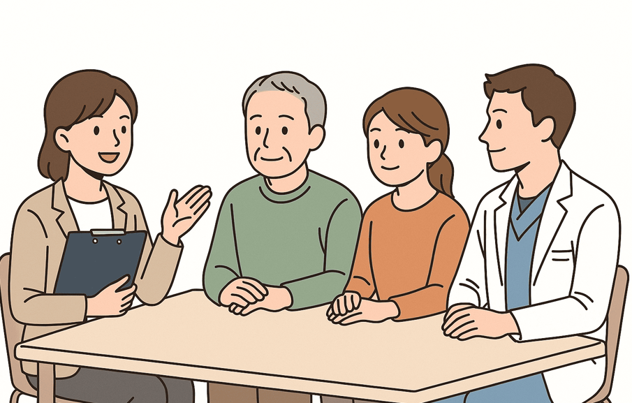 在宅生活を支える要の一つが、ケアマネジャー(介護支援専門員)です。患者様やご家族と面談し、介護サービスの利用計画(ケアプラン)を作成・調整する「介護の司令塔」としての役割を担っています。