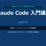横浜ホームクリニックでは、これまでも少しずつ業務の自動化や仕組み化を進めてきました。今回の講習で扱ったClaude Codeは、その取り組みをさらに前進させる手段の一つです。Claude Codeの特徴は、単なる文章生成ではなく、自然言語で指示を出しながら、実際のPC作業や情報処理を効率化できる点にあります。